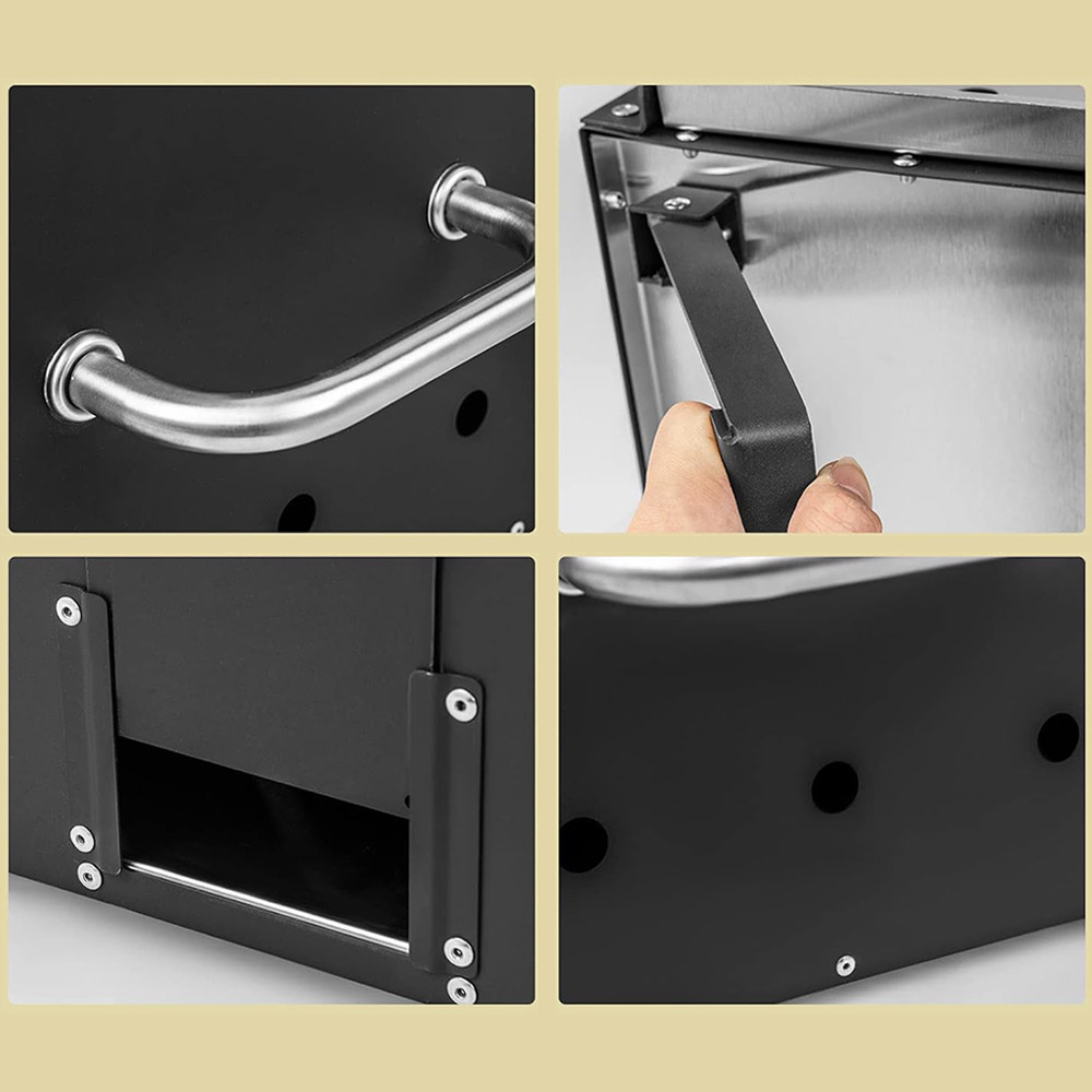 Леката конструкция и сгъваемите крака улесняват транспортирането. Неръждаемите стоманени дръжки осигуряват стабилен захват, което позволява лесно преместване на печката.