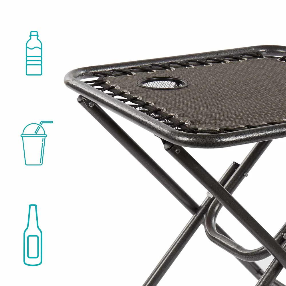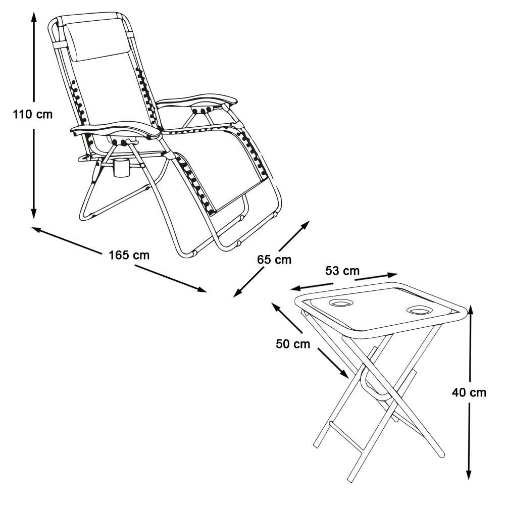 Комплектът включва лека, но стабилна маса, която удобно държи напитки, закуски или книга. Това е полезно допълнение към вашата релаксация, държейки всичките ви основни неща на ръка разстояние, без да е необходимо да ставате.
