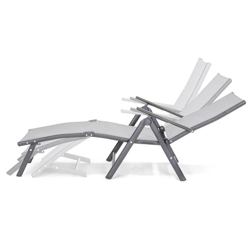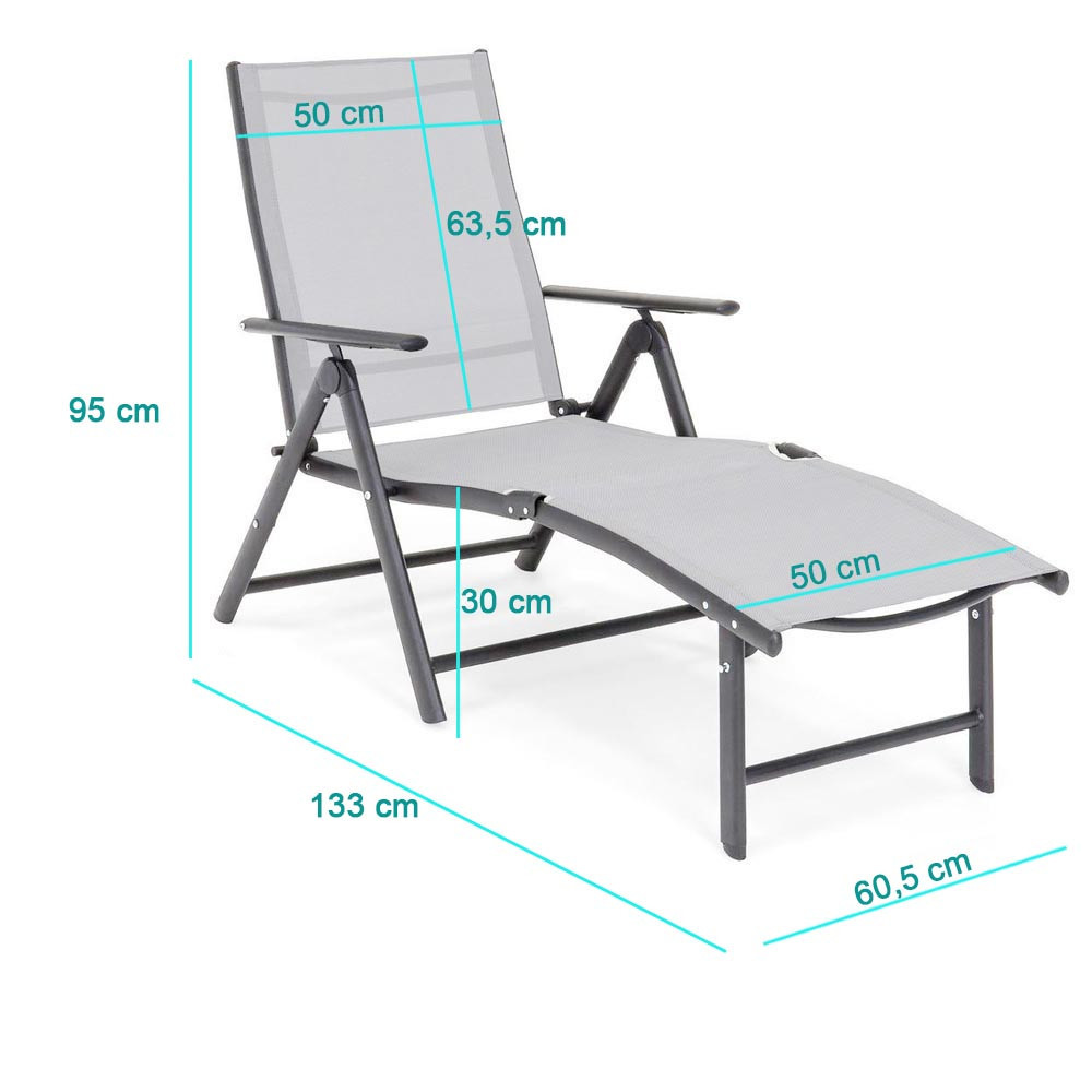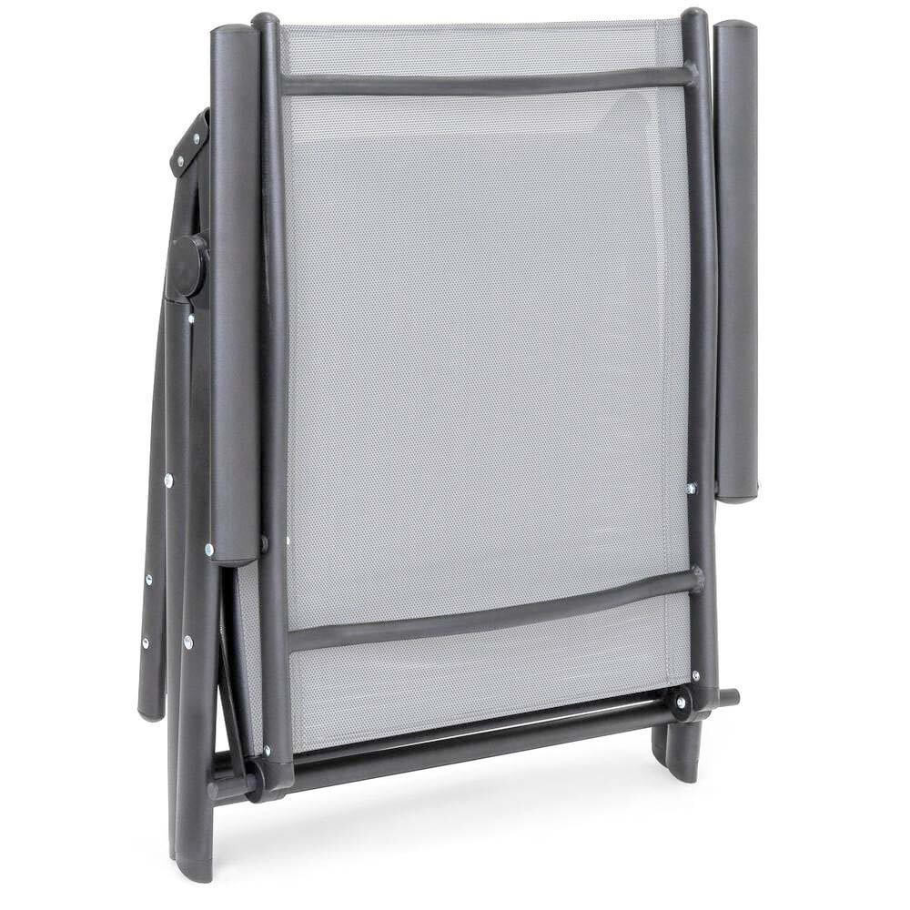 С алуминиевия си каркас, шезлонгът е изключително лек, което го прави лесен за преместване или транспортиране. Занимава малко място, така че когато не ви е нужен, просто можете да го сгънете и съхраните без да заема много пространство.