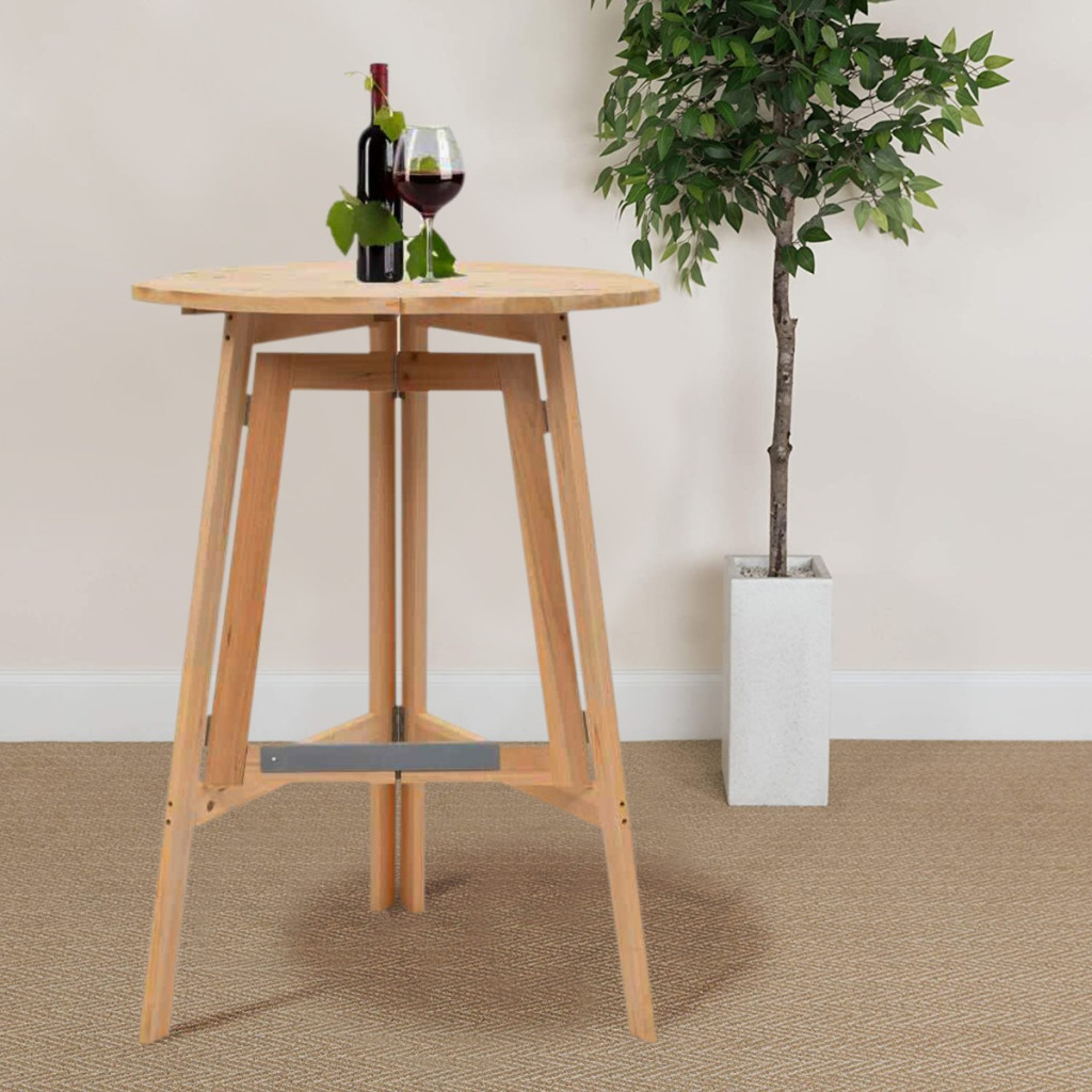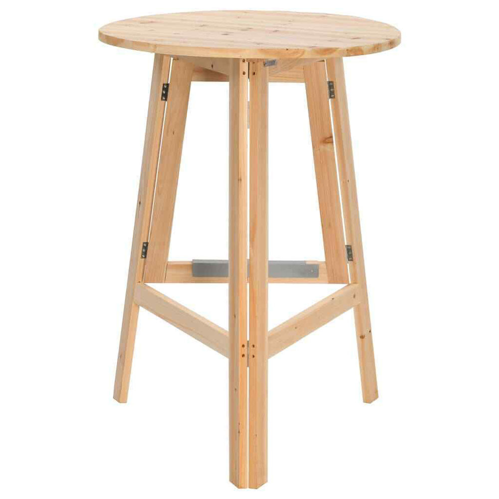 Естественият, необработен бор е здрав и издръжлив, което го прави надежден спътник за различни събития в дългосрочен план. Дизайнът с три крака не само че е естетически приятен, но също така осигурява стабилна опора, независимо дали се използва на открито или на закрито. Плота с диаметър 75 см е достатъчно просторен, за да побере удобно напитки, храна и декорации.