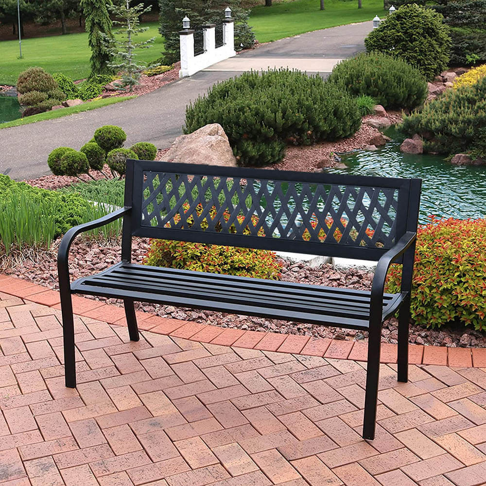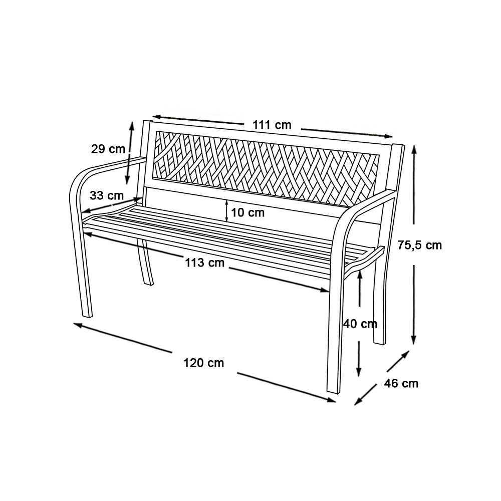 Черният цвят и решетъчната облегалка представляват елегантен, но сдържан стил, който лесно се вписва в всяка външна среда. Пейката може да бъде естетично допълнение към вашата градина, като същевременно изпълнява своята функционална роля.