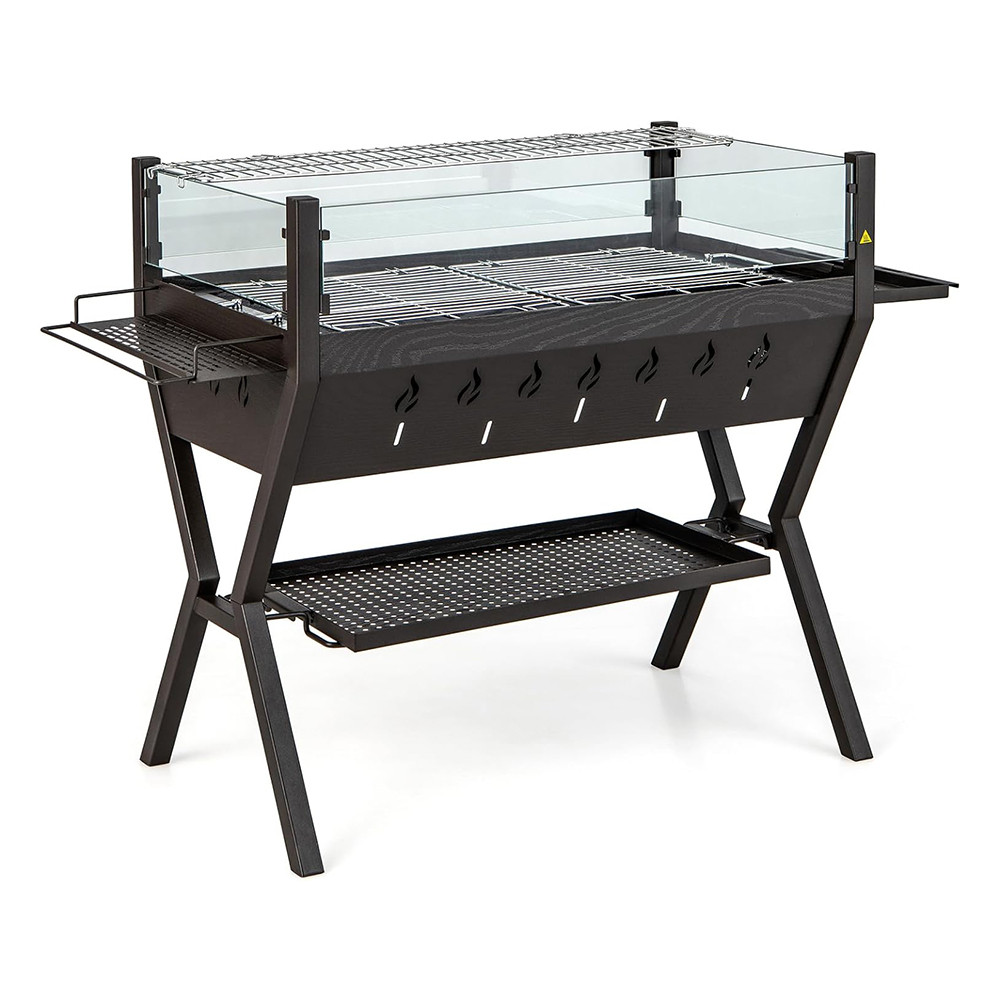 Страничните решетки за подправки, долната поставка за съхранение и удобните дръжки помагат за поддържане на ред, а стабилната рамка гарантира безопасна употреба.