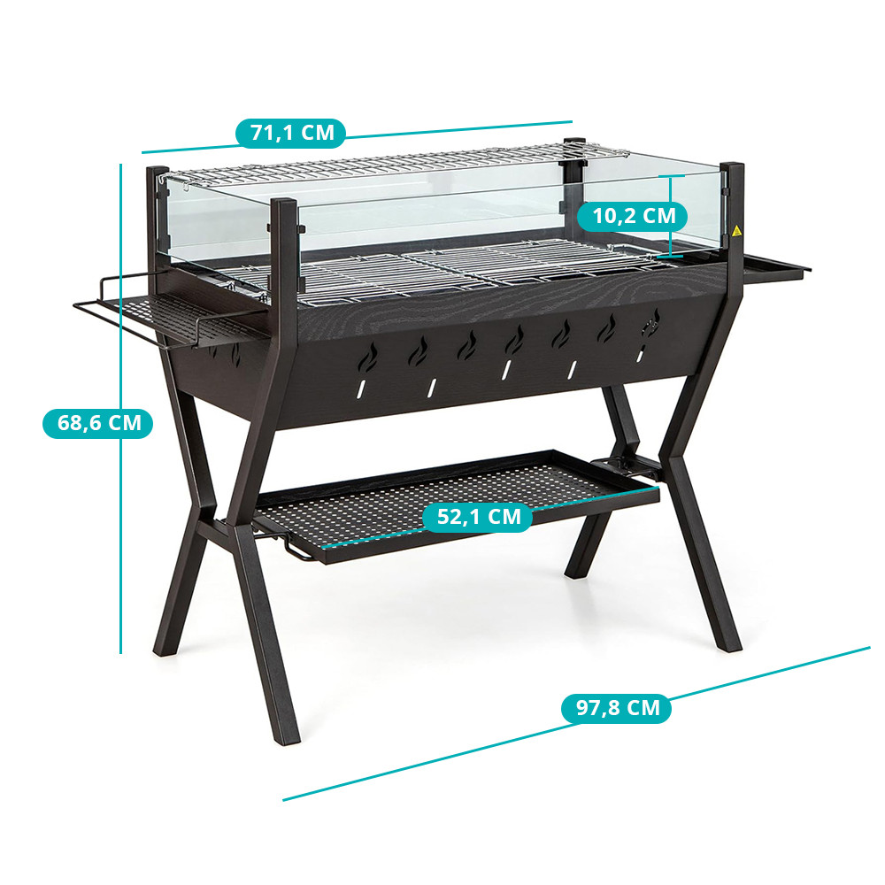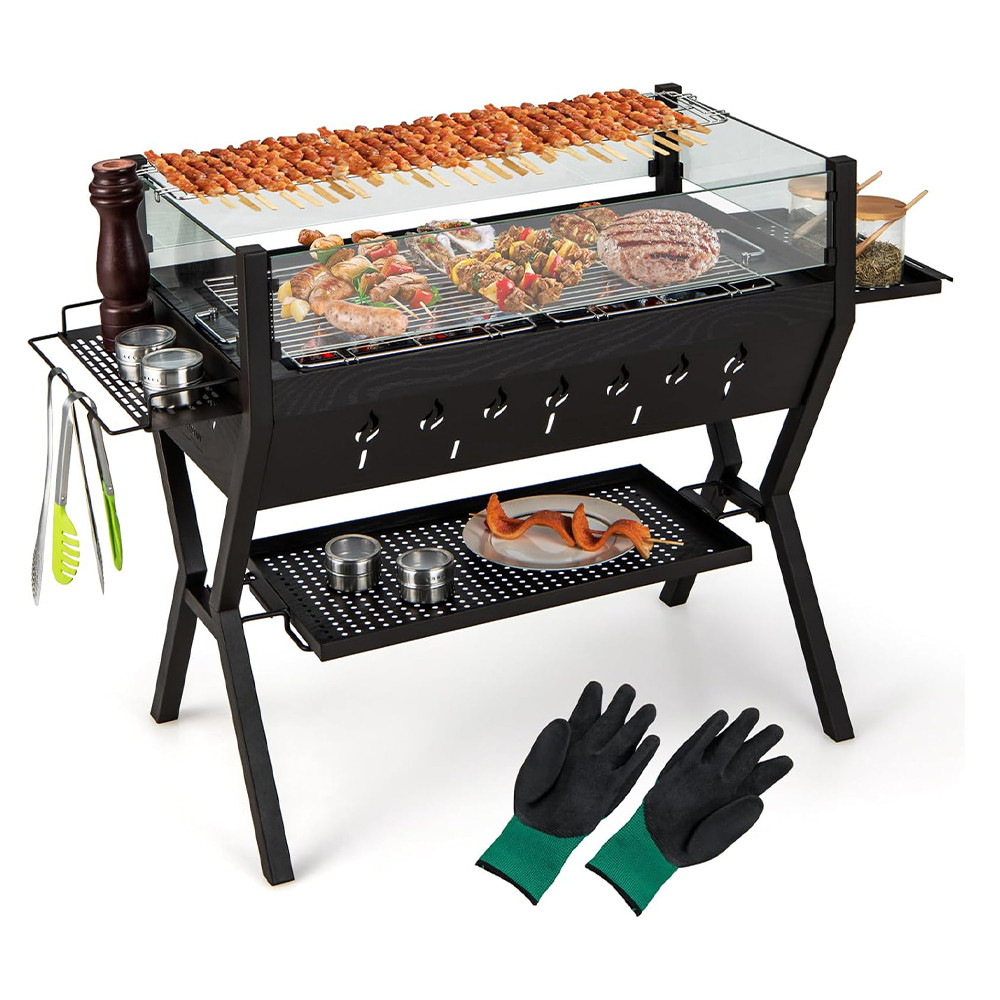 - 3-в-1 въгленов грил: грил, готварска станция, огнище