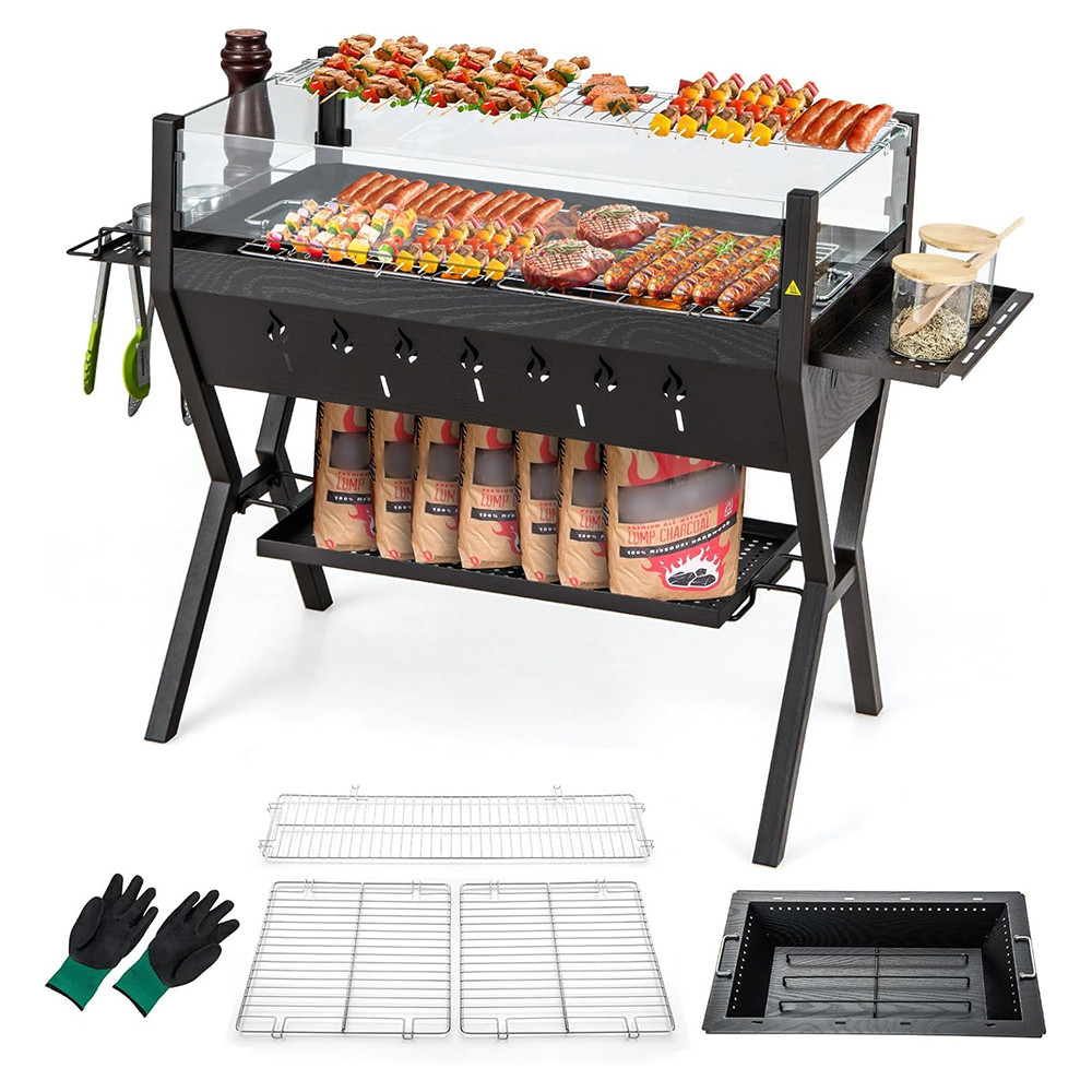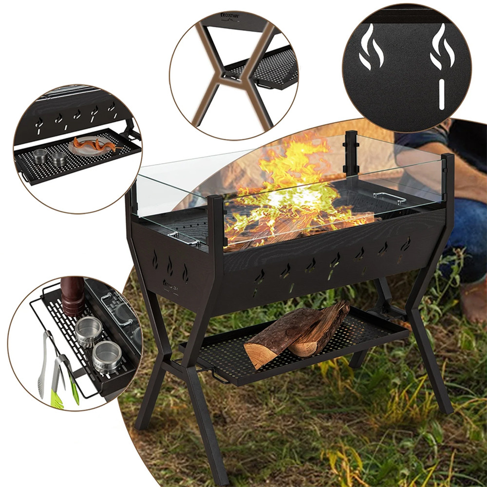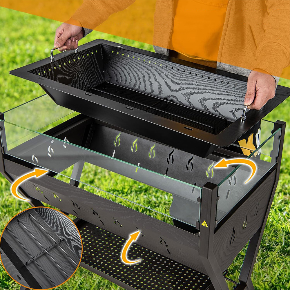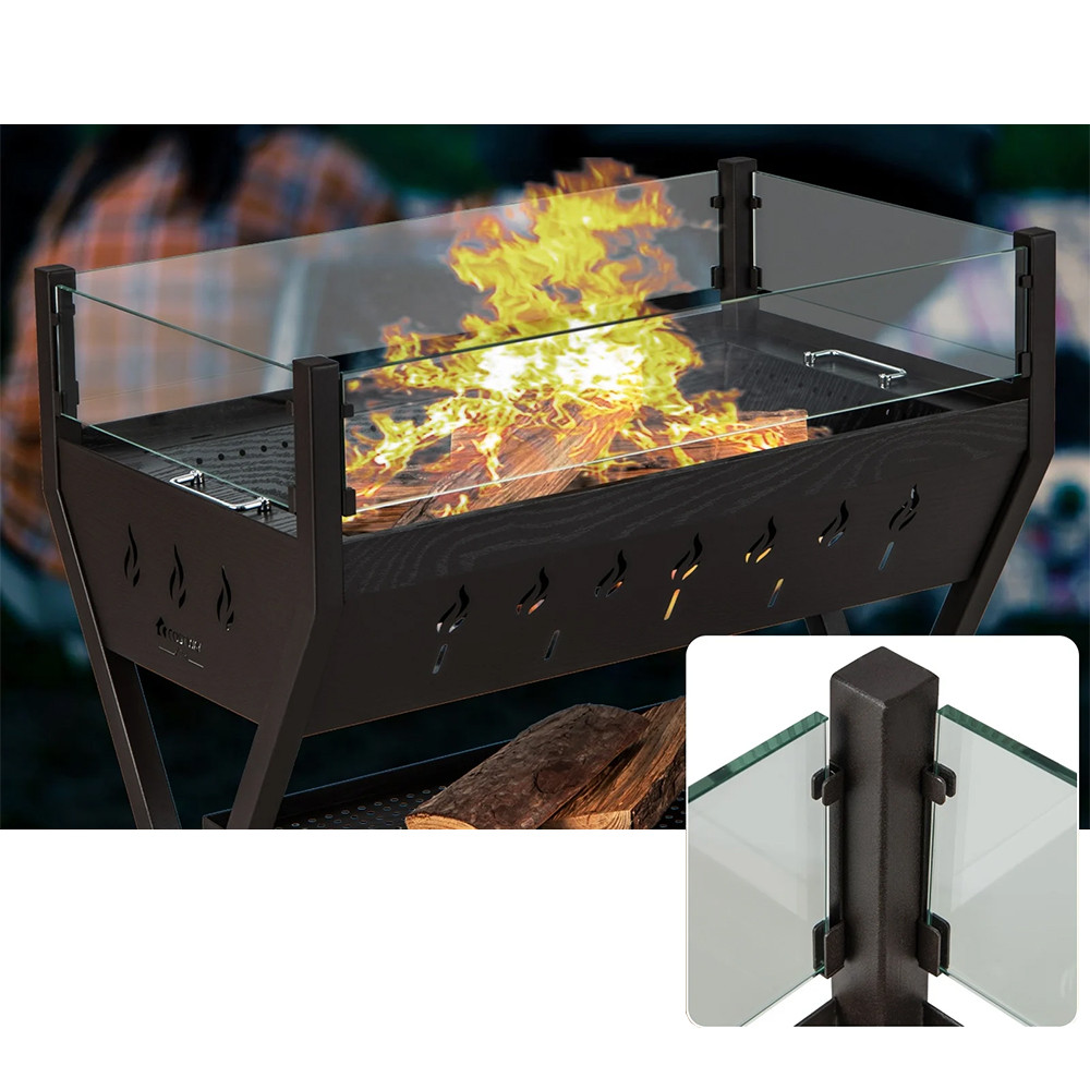 3-в-1 конструкцията на грила позволява използване за класическо печене на скара, къмпинг готвене или създаване на уютен огън, предлагайки гъвкаво решение за всеки повод.