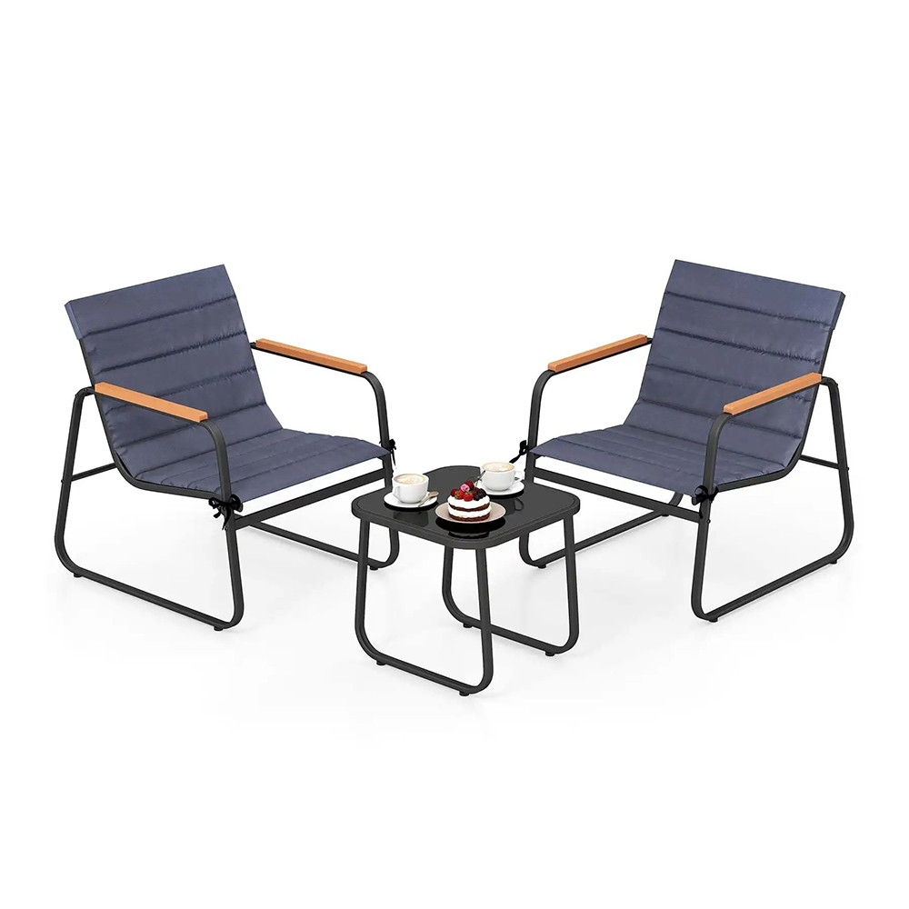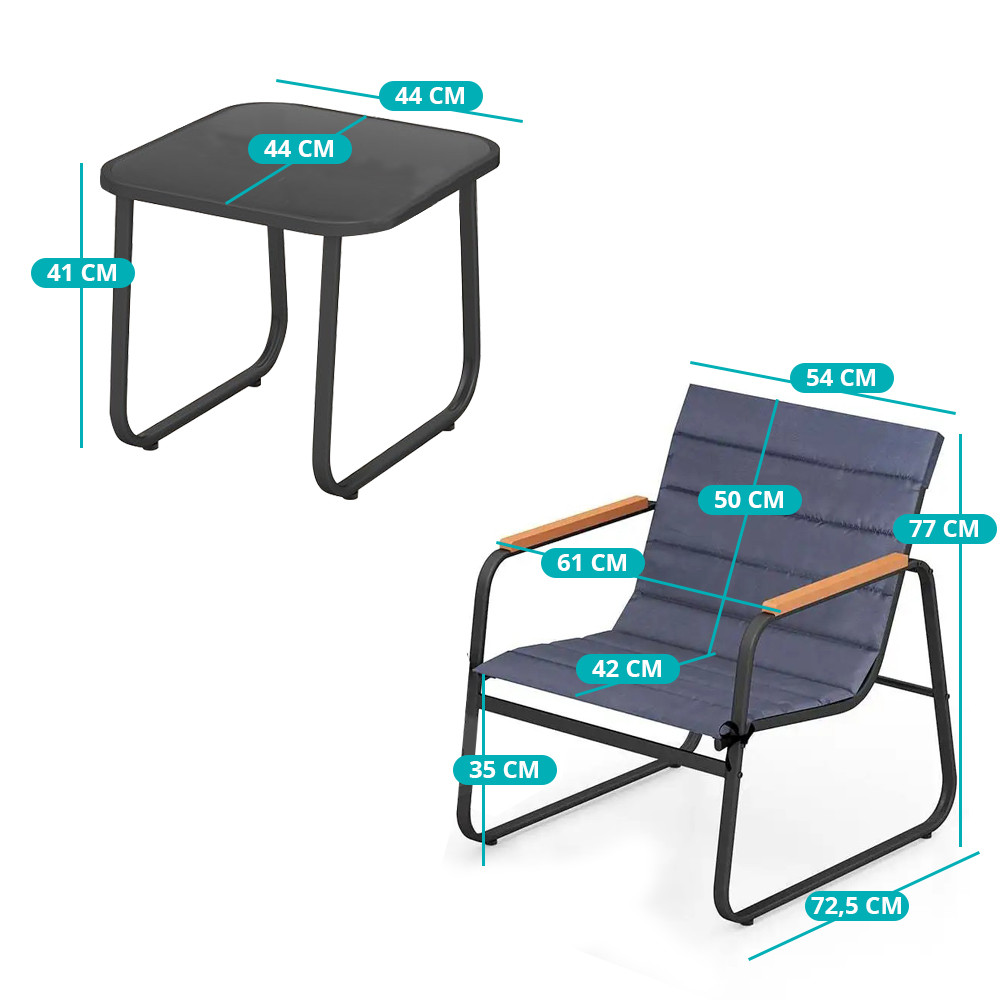 Външният бистро комплект е перфектният избор за сутрешно кафе или вечерни разговори. Широката седалка и мекото покритие осигуряват приятно удобство дори по време на по-дълги периоди на релаксация.